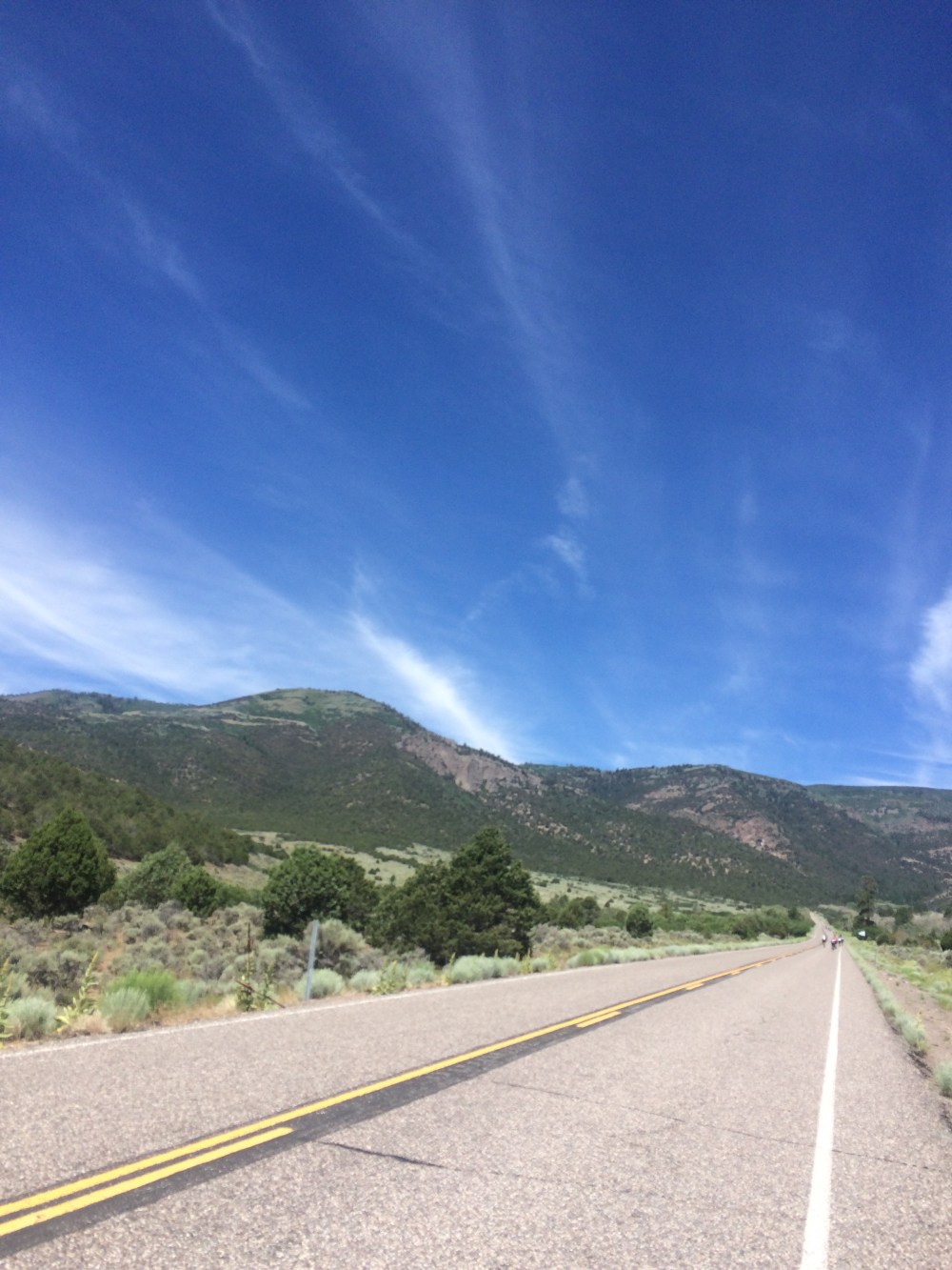 In the weeks prior to the race all the race reports i read talked about the descent down the Col d’Crush. Words like bike missiles, white knuckle, loose, and wash boarded were common. The descent while steep, was in great shape and I just tried to stay off the brakes as best I could. I admittedly am not a strong descender so I erred on the side of caution and managed my way down safely. A few of the switchbacks were loose and eroded, but otherwise the descent was trouble-free and I was back on pavement headed into Junction, UT. This is where the road race resumes with 12’ish miles of flat and smooth pavement. At the start I caught back up to Brad who was spun out on his SS, I know the feeling too well, and wished him luck. After rolling through the aid station I teamed up with a pro female rider and another male rider as we took turns pulling into a stiff headwind. The pace was too high for me, but I knew I would be hurting more battling that headwind by myself so I hung on. Right before reaching Circleville, UT we caught a couple more riders and the times pulling lessened and provided more time to recover which was nice. We looped around Circleville and eventually that headwind turned into a tailwind and we were flying. The road also returned to gravel which was exciting to say the least. Flying down a gravel road in a group is a lesson in trust for those around you. As we were hauling down this dirt road we caught back up to the Fat Cyclist and I yelled for him to hop on, which he did.