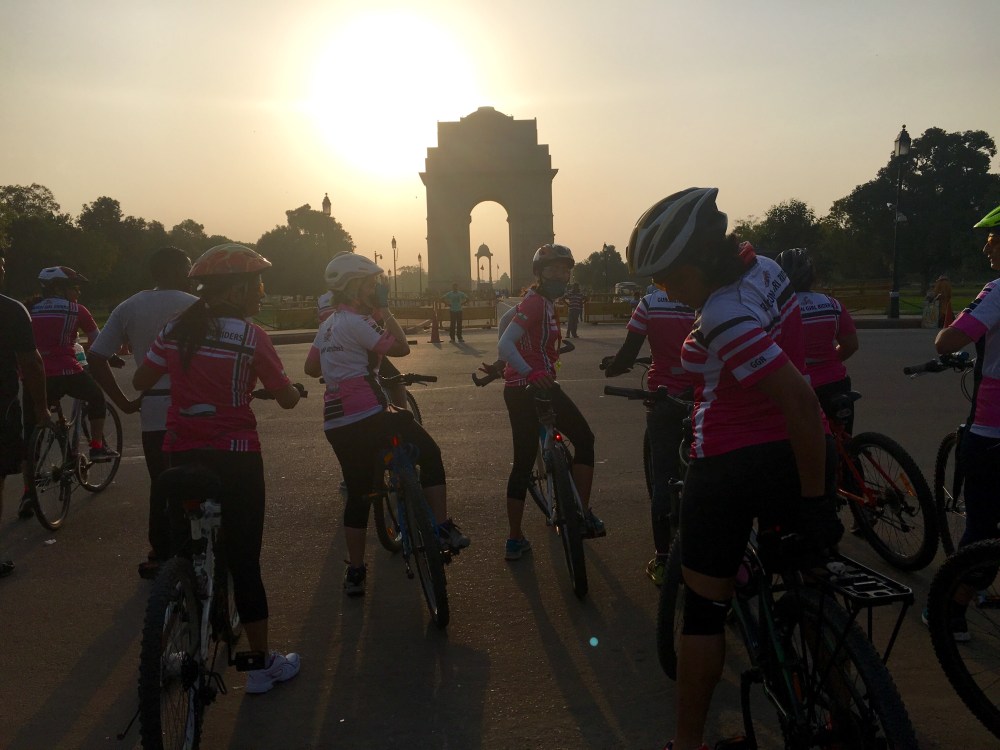 Even with all these challenges Anita, who was already an accomplished cyclist and adventurer (she recently hiked to Everest Base Camp!!), decided to start a women’s cycling club. While there are some coed clubs in Gurgaon and Delhi, Anita recognized that not many women were joining these clubs due to their completive nature and intimidating environment for newcomers. Anita saw the need for a female cycling club and she voluntarily and courageously responded. Anita realized how empowering cycling is and wanted other women to experience this. Many of the women in the club are new to cycling, some don’t even own bikes when they reach out to Anita. She helps them find bicycles and she helps them find mechanics and bike shops to service their bikes. She organizes clinics to teach the women how to take care of their bikes and change flat tires. She arranges SAG support for the rides so everyone is safe and has enough water. Many of the rides are point to point due to the distance that the women can ride before the traffic gets too unbearable so she arranges taxis so all of the women and their bikes can get home safely after the ride. And she rides sweep, making sure that everyone is safe and having fun. It was amazing to watch her in action, calling and texting all of the girls at 4:45 AM to make sure they arrived safely. Making sure everyone was at every checkpoint and doing well and then telling everyone which cab they were taking home afterwards.